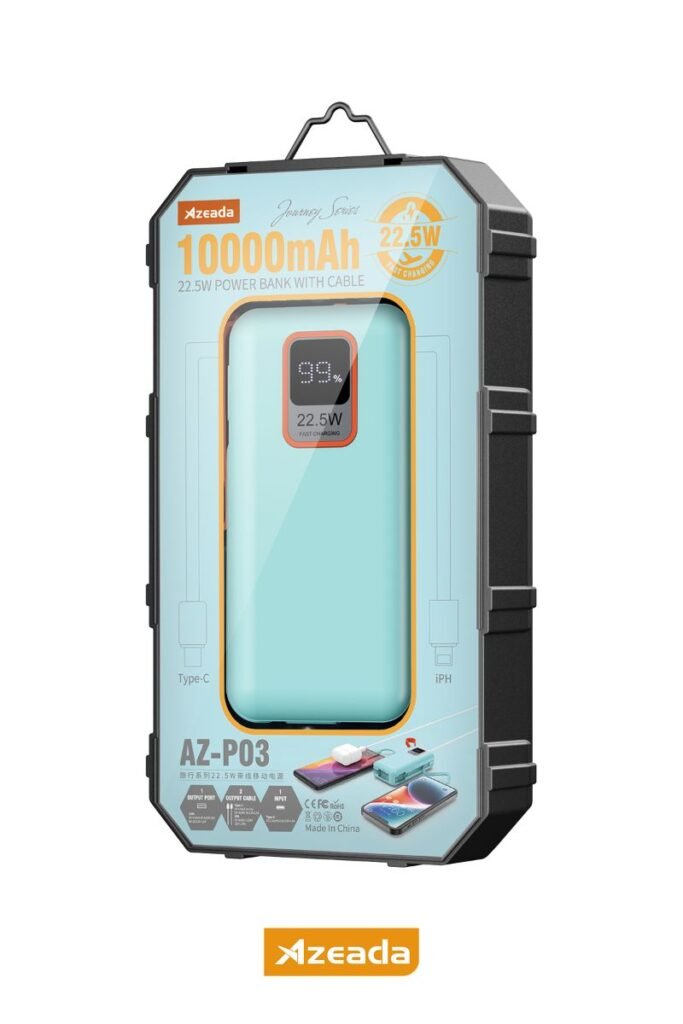 Azeada AZ-P03 22,5W 10000mAh Power Bank Dahili Kablolu