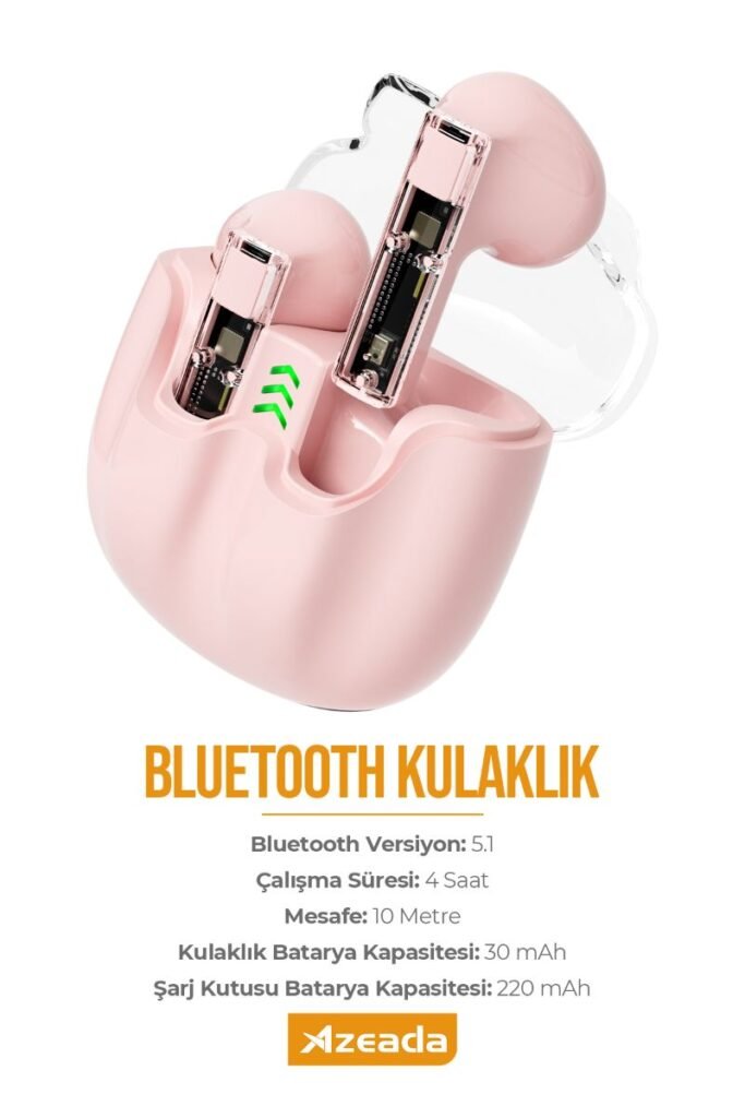 Azeada PD-BT119 TWS Bluetooth Kulaklık Pembe Renk