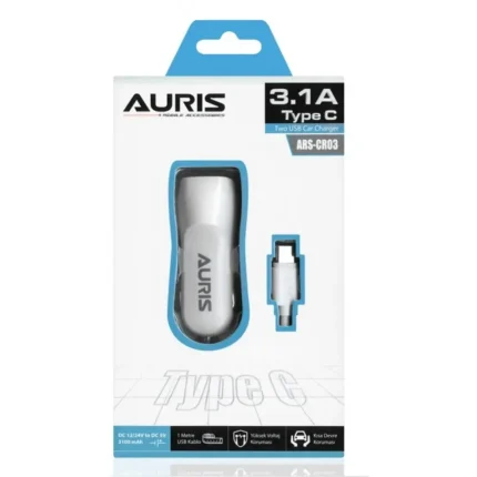 Auris Ars-Cr03 3.1a Hızlı Type-c Kablo 2 Usb Girişli Araç Oto Şarj Başlığı Çakmaklık Typec 3.1 Amper