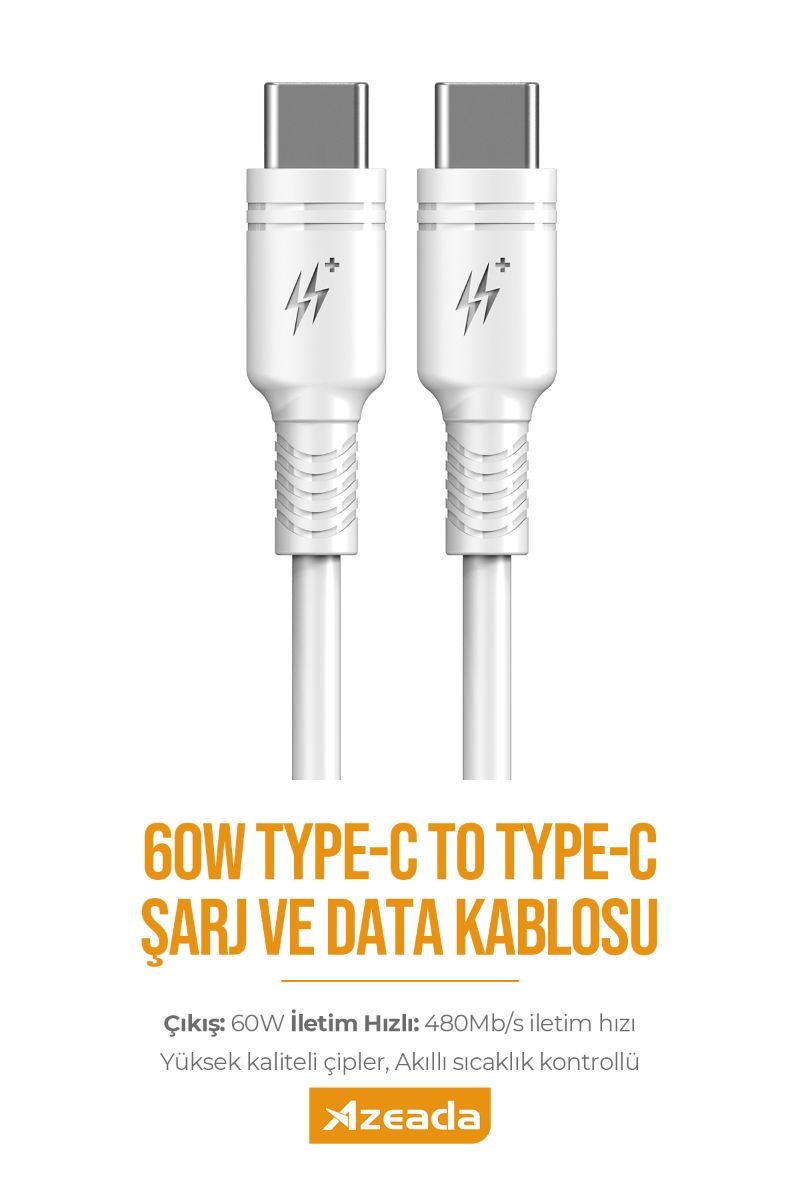 Anasayfa » 🛒 Şimdi Sipariş Ver! 24 Saatte Teslimat 🚚 » Azeada Type C to Type C PD-B82a 1mt 60W Data Kablosu
